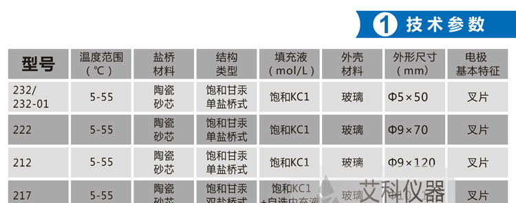 參比電極的技術參數