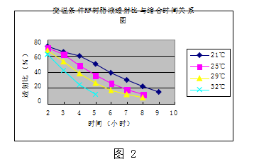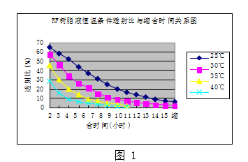 變溫條件RF樹脂液透射比與縮合時(shí)間關(guān)系圖